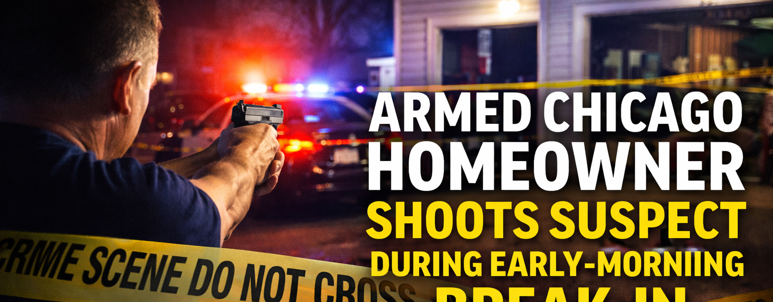 Police say the homeowner, who holds a valid Illinois Concealed Carry License (CCL), drew a firearm during the confrontation and fired, striking the suspect in the right calf. The wounded man was transported to the University of Chicago Medical Center, where he was listed in good condition.